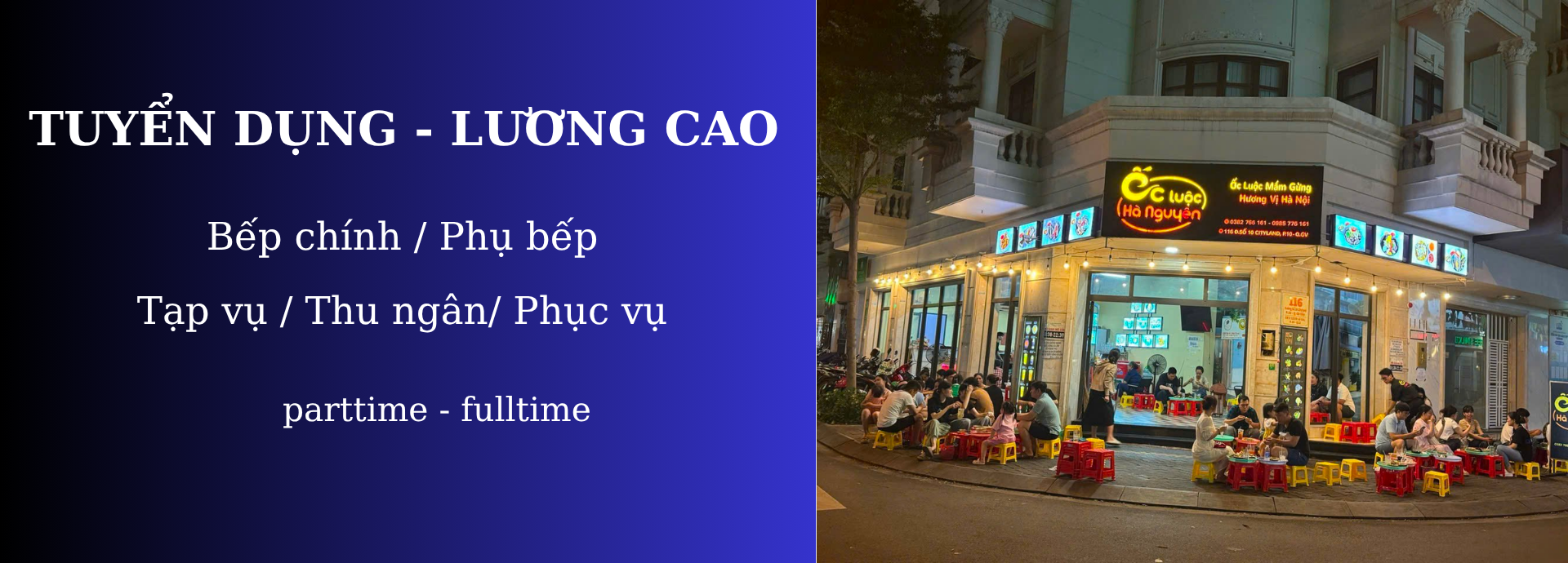Tuyển nhân viên bếp, phụ bếp, phục vụ, thu ngân, tạp vụ – Ốc Luộc Hà Nguyên